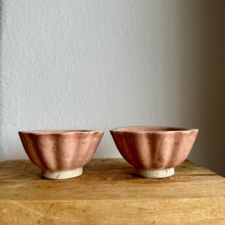 • Small Scalloped dish – Pink glaze, set of 2