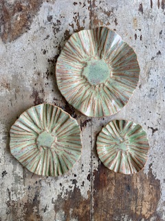 • Medium drapped dish with a brownish glaze